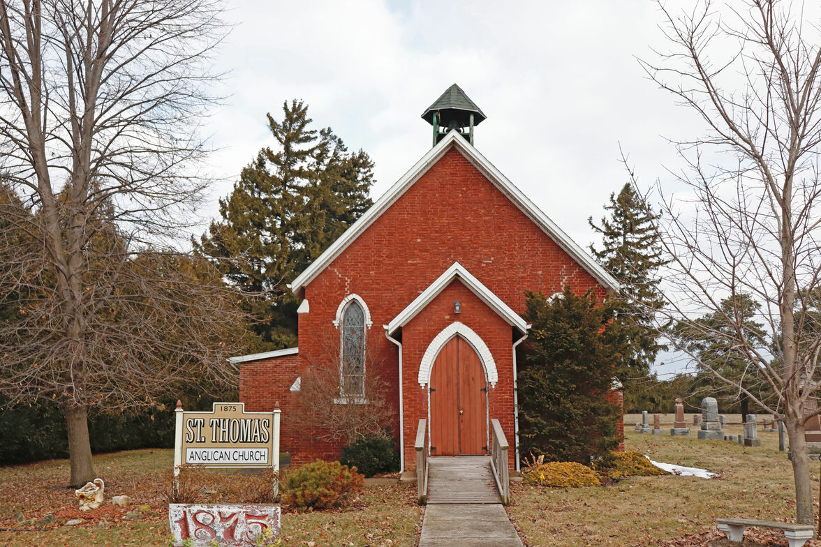The land on which it rests is a parcel of 5 acres bequeathed to the Diocese by Ann Smith in 1847. The church was built over her grave and that of her mother, father and sister. The cornerstone was laid on October 12, 1875 with the Grand Lodge of Chatham present, having arrived by boat, the Steamer Steinhoff, on the Thames River.
